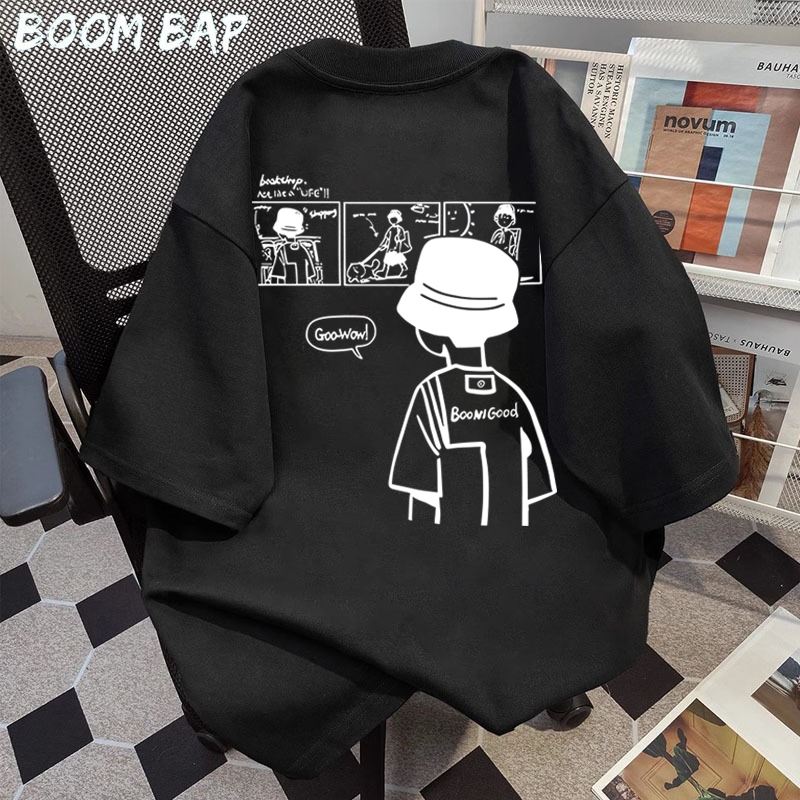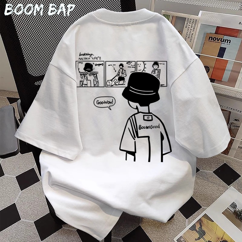 Baju Anak BOOMBAP American retro Style T-shirt Oversize anak laki-laki kartun Print top| Kaos Wanita Putih | Kaos pria d
