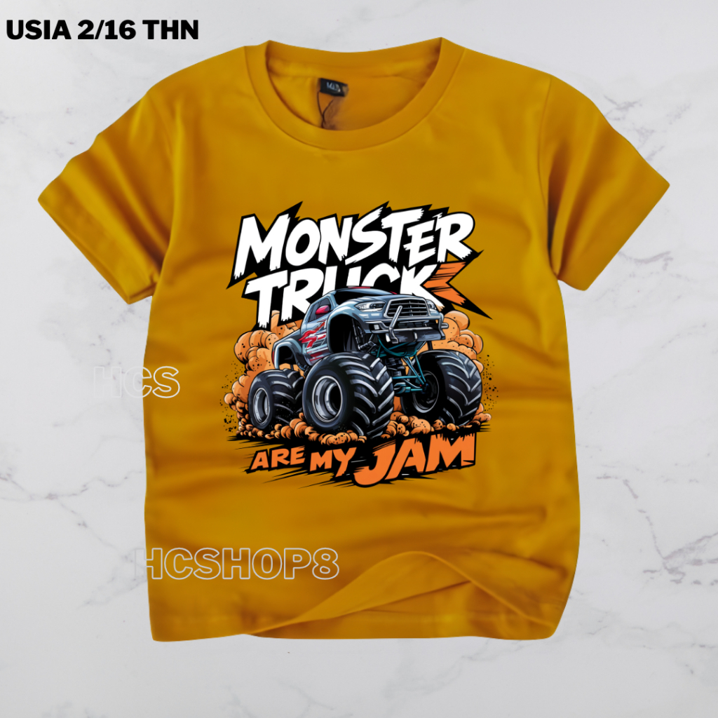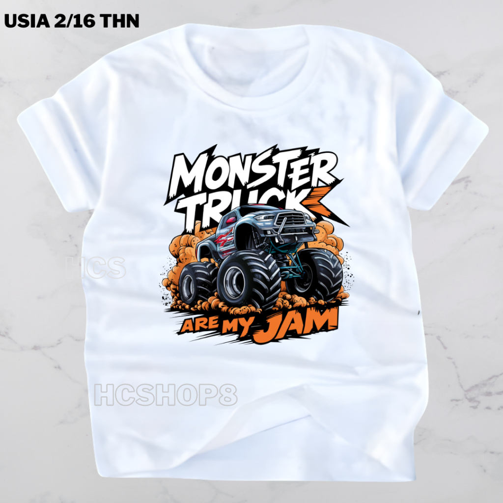 Baju Kaos Anak Kaos Anak Laki Laki Perempuan Monster Truck Usia 2-16 Tahun Ideal Cowok Cewek