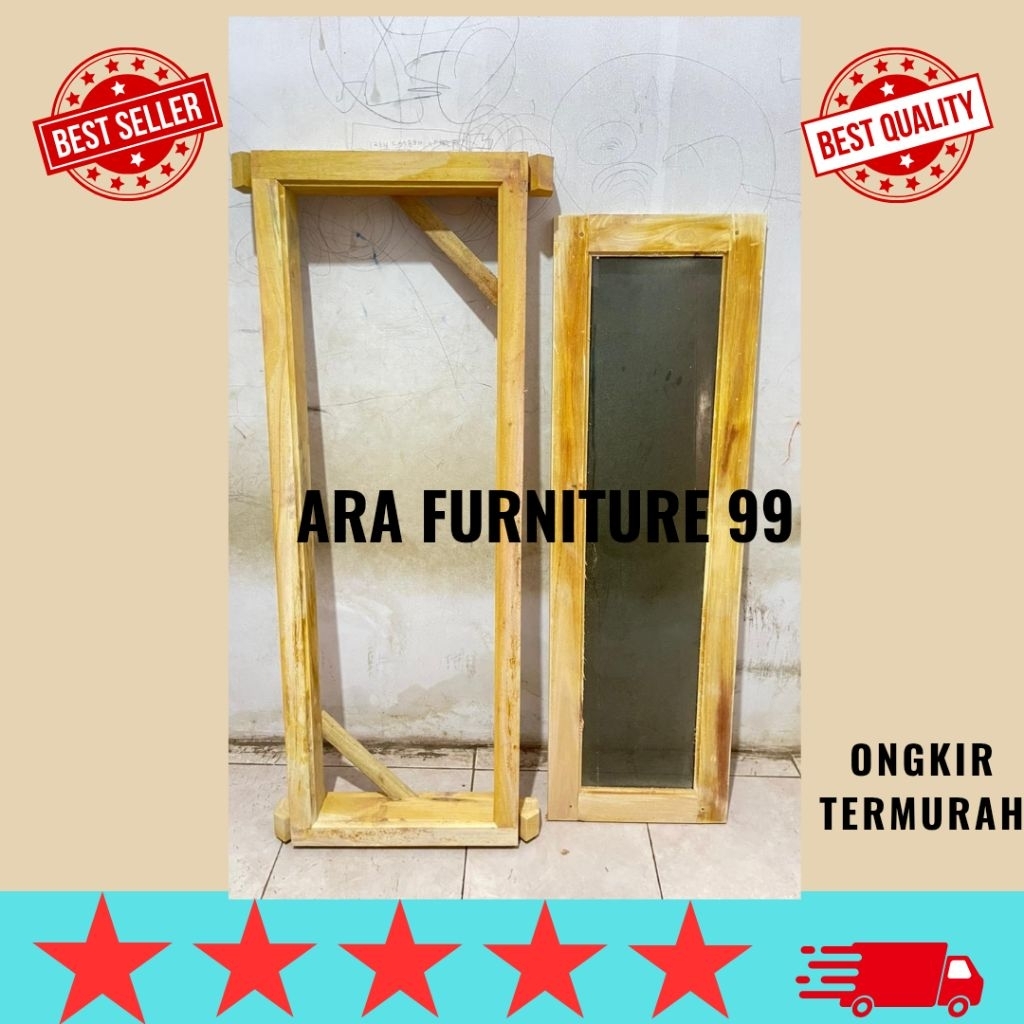 ready stock daun jendela+kusen 1set kayu mahoni