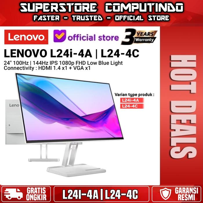 Monitor Led Lenovo L24I-4A 24" 100Hz | L24-4C 24" 144Hz Ips 1080P Fhd Hdmi 1.4X1 Vga X1 Speaker 99 PERSEN Srgb Color Gamut Ves