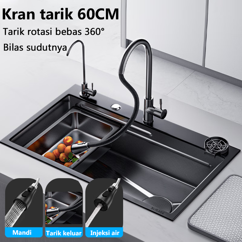 SUS 304 Kitchen Sink 80X45CM Ketebalan 3.0mm Wastafel Dapur Hitam Wastafel Stainless Steel Wastafel Dapur Lengkap Tarik