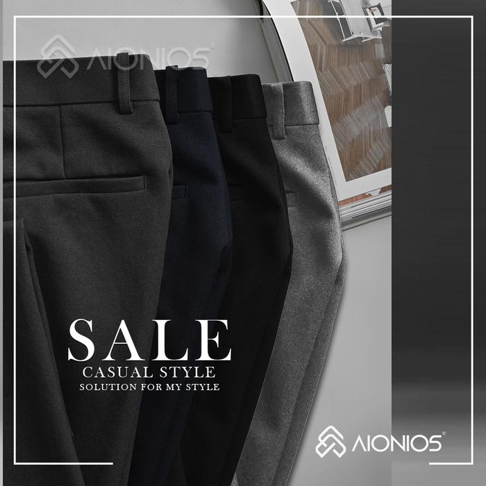 Celana Bahan Pria Slimfit Kantor Formal Dasar Kain Size Kecil - Jumbo - Hitam, 27