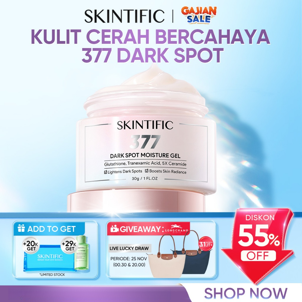 SKINTIFIC - 377 Dark Spot Moisturizer Gel 30g | Penyamar Noda Hitam & Meratakan Warna Kulit Cream Pemutih Wajah Calming