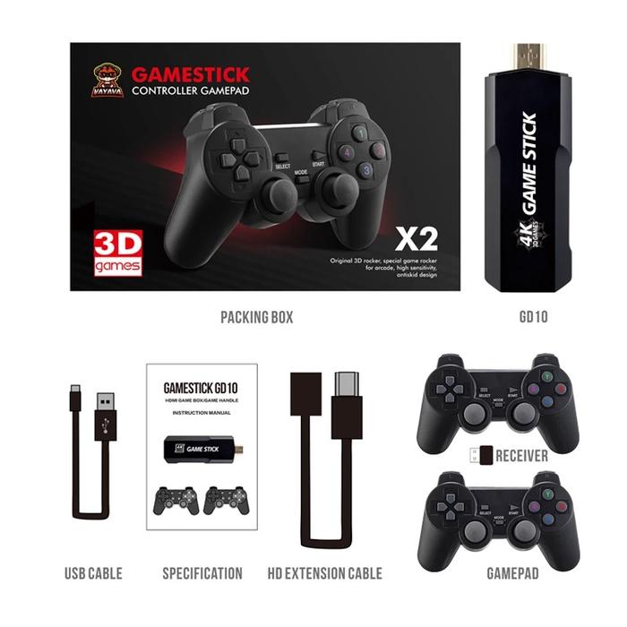 4K Game Stick Gen 2 Retro Console Wireless Gamepad Video Game Retro - Pk-10, 64Gb