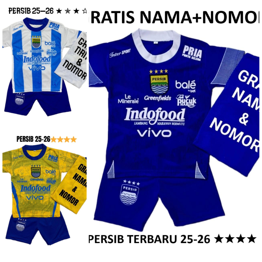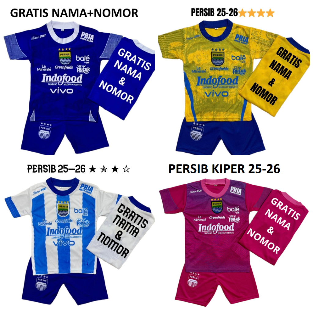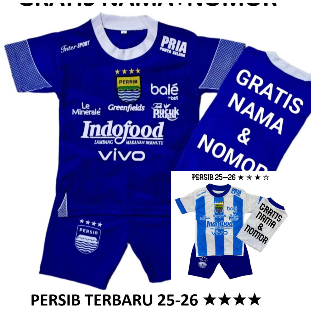 Baju Bola Anak Persib Baru 25 Bintang 4 Juara 2025 Gratis Nama