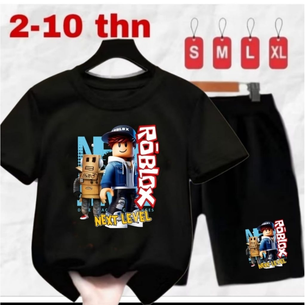Baju Kaos Anaksetelan anak cowok cewek usia 2-10thn//pakaiyan anak unisex motif ROBLOX NEXT LEVEL
