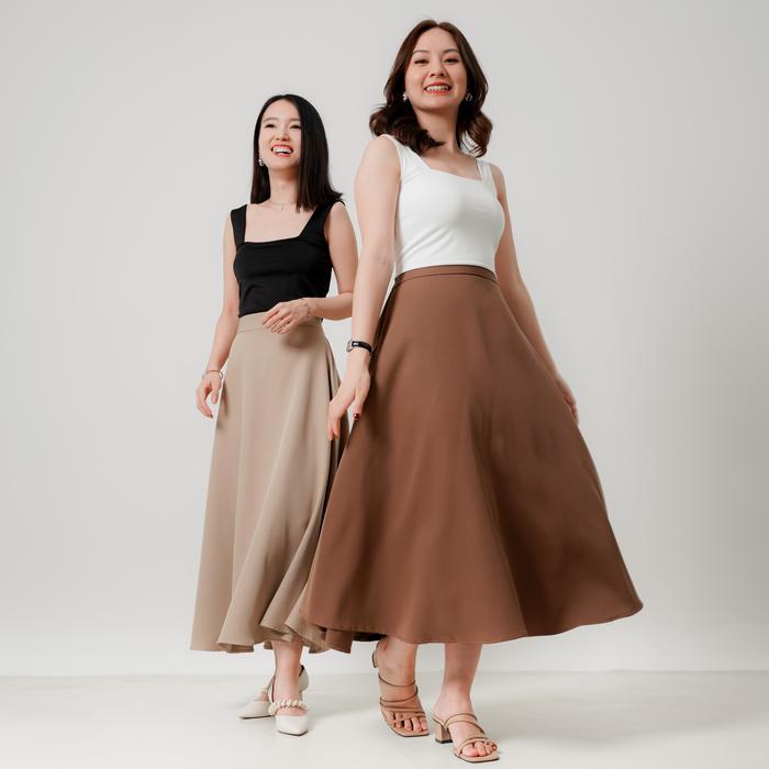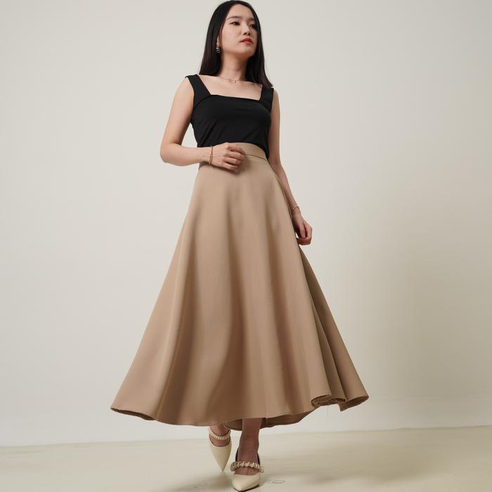 Severli Fuji Midi Maxi Skirt | Rok Kerja | Rok Wanita Korean Style Formal Casual | Rok High Waist Flowy Tebal Pinggang K