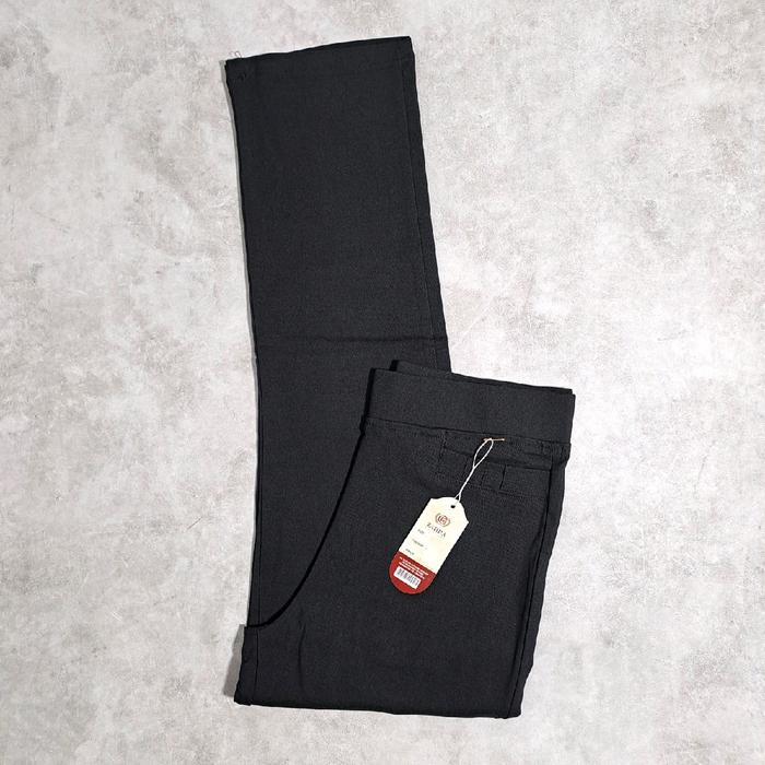 Celana Kantor Kerja Wanita Panjang Katun Hitam Formal Casual Dewasa Pinggang Karet Jumbo Model Standart Bahan Melar - Hi