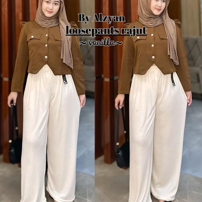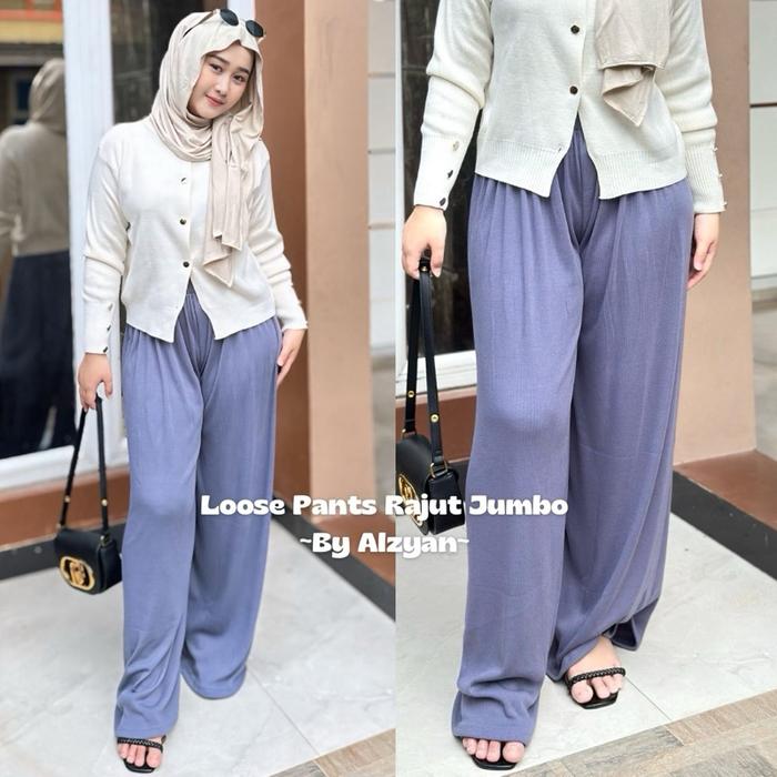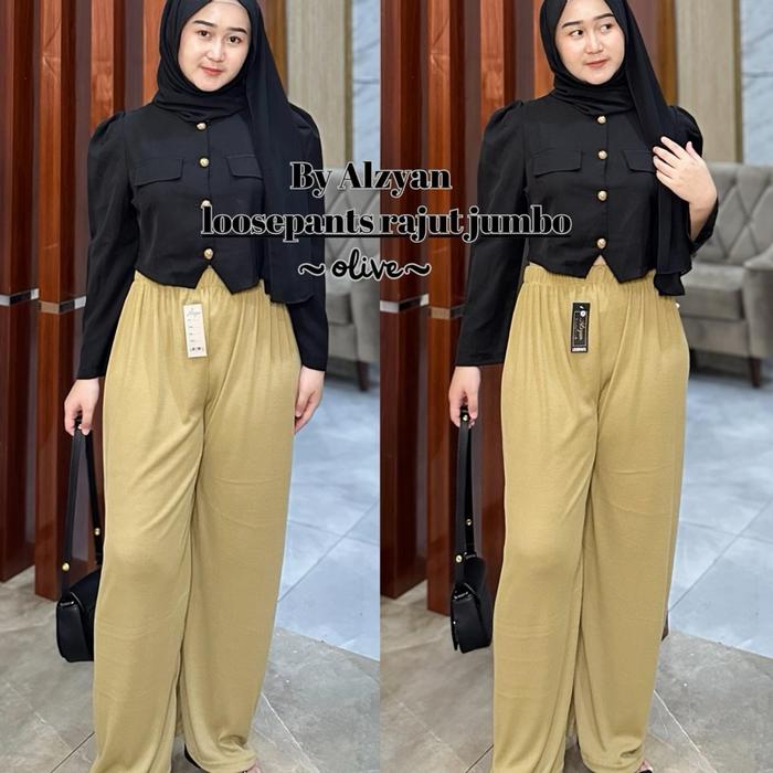 By Zayyenna - Loose Pants Rajut Jumbo / Kulot Highwaist Super Jumbo / Celana Super Jumbo Terlaris - Hitam, Jumbo