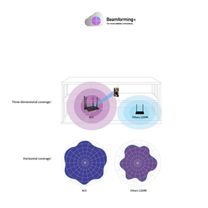 Tenda Ac6 Dual Band Ac1200 Mbps Gigabit Wifi Router Extender Repeater Black Adaptor Antena - Black