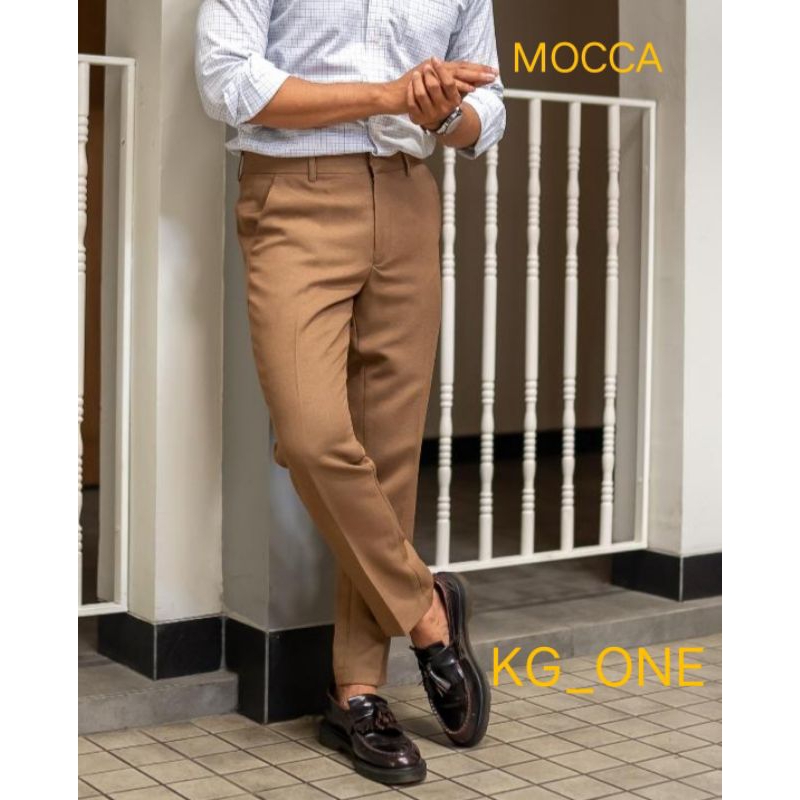 TERLARIS celana bahan pria Celana formal pria Slimfit kerja harian Cream Mocca putih Size 27-38 celana slim fit pria