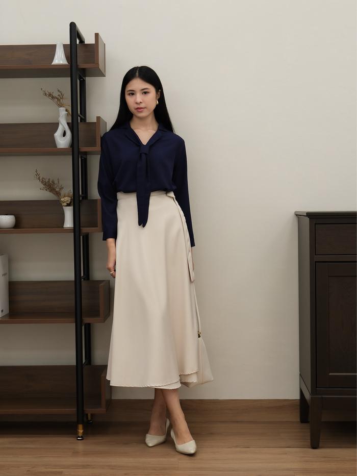 Rok Flare Maxi Wanita | Himari Skirt | Hulm - Cream, Midi 70 Cm