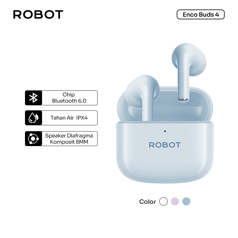 ROBOT TWS Earphone Airbuds In- Ear | Bluetooth Chip 6.0 True Wireless Headset Daya Tahan 28 Jam | Suara Jernih , Driver