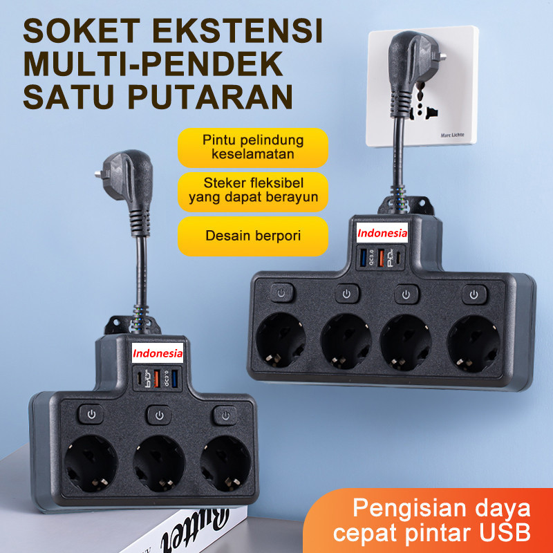 Multi Soket Colokan Listrik 3 Lubang Stop Kontak Usb Universal Stop Kontak 4 Lubang