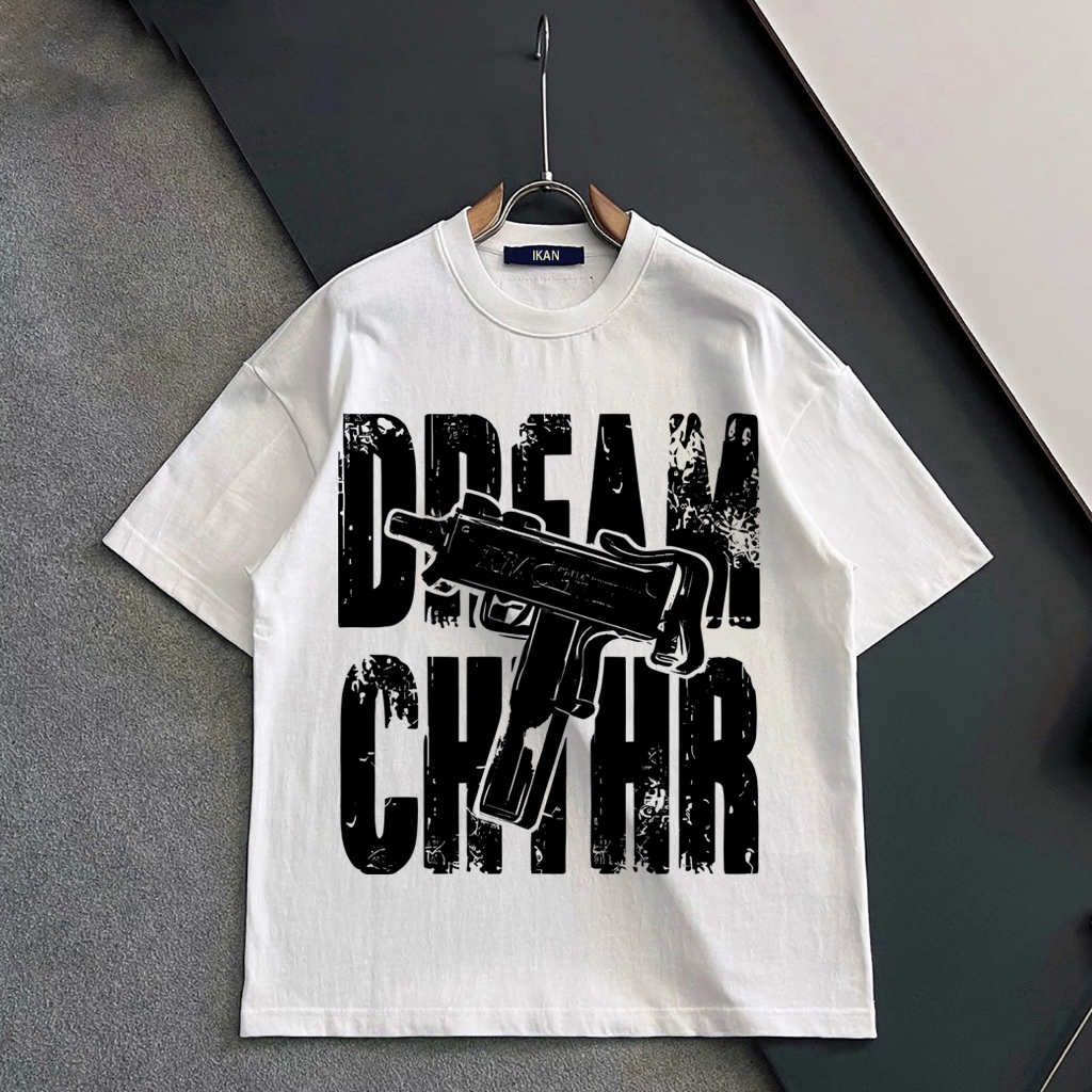 AUZY American retro Style T-shirt Oversize DREAM CHIHR Print top| Kaos Wanita Hitam | Kaos pria dan wanita | Street Style 100 PERSENCotton top 10.8