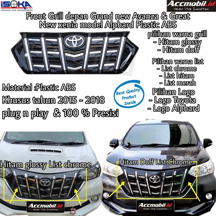 GRILL DEPAN ALL NAW AVANZA XENIA 2015-2018 MODEL ALPHARD PLASTIC ABS - HITAM GLOSSY, LIST CHROME