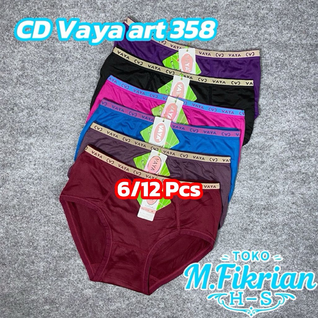 6/12 Pcs Celana Dalam Wanita VAYA 358 Katun Lembut M-2XL | CD Polos Adem Nyaman