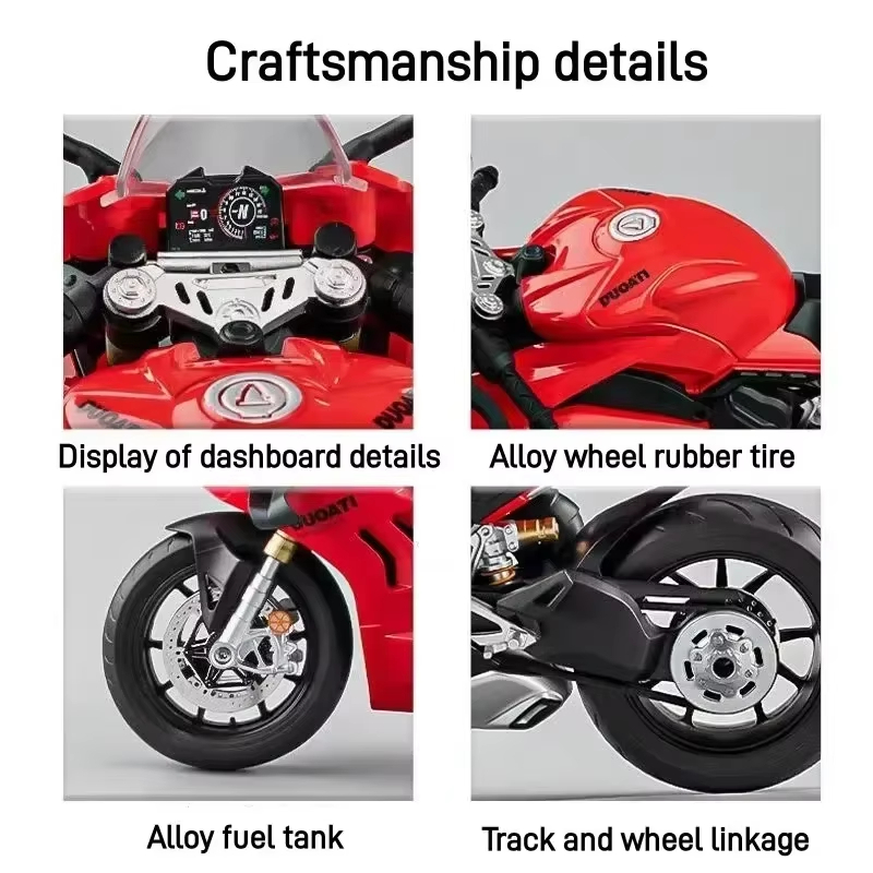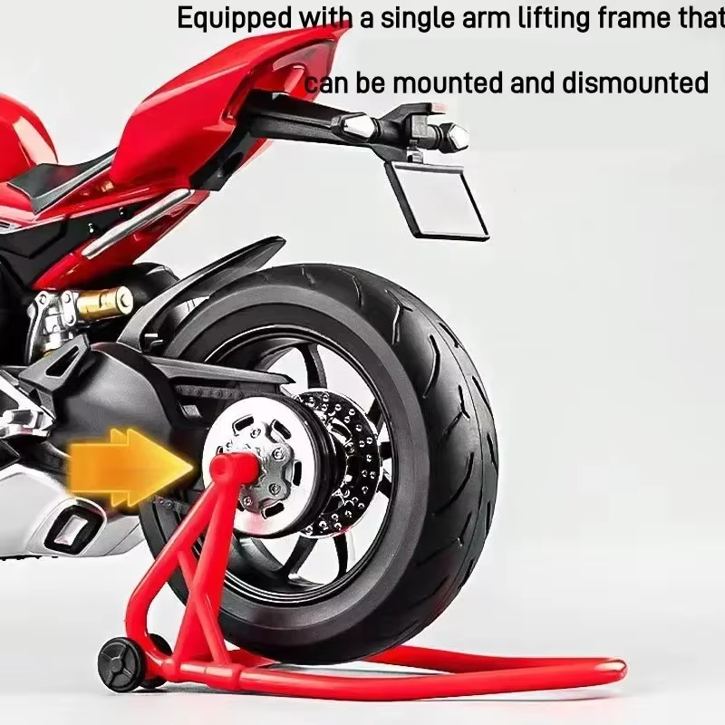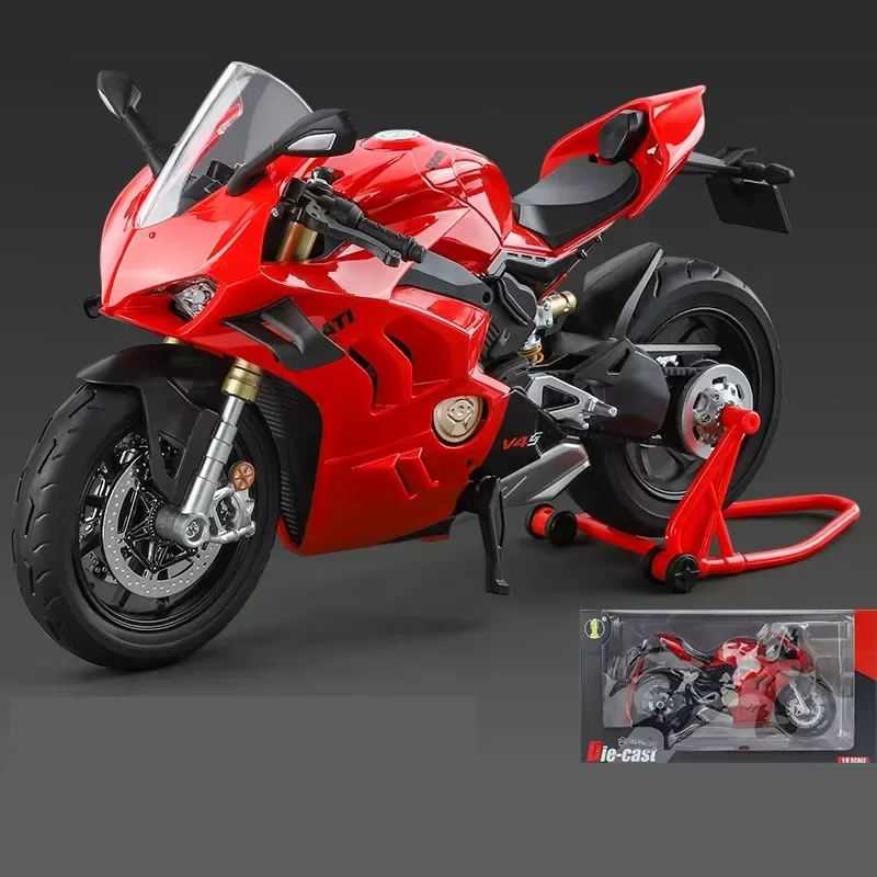 Miniatur Diecast 1:9 Ducati Panigale V4S (Ran-tai Gerak, Paddock, Suspensi, Tangki Logam Besi)
