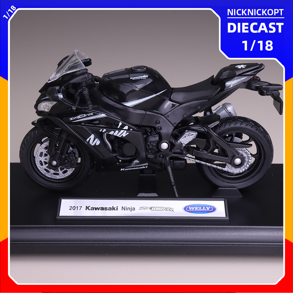 Miniatur Motor Welly Kawasaki 2017 Ninja ZX10-RR Skala 1:18 Diecast Mainan Koleksi