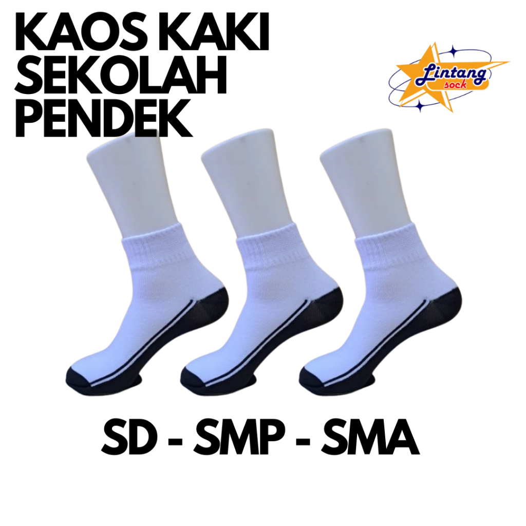 Paket 12 Pasang Kaos Kaki Sekolah SD SMP SMA Telapak Hitam Pendek Semata Kaki