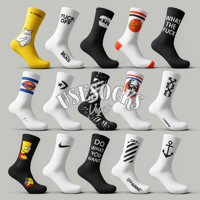 Kaos Kaki Fashion Pria Wanita Motif Karakter & Brand Import Premium – Sport, Oldschool, Streetwear