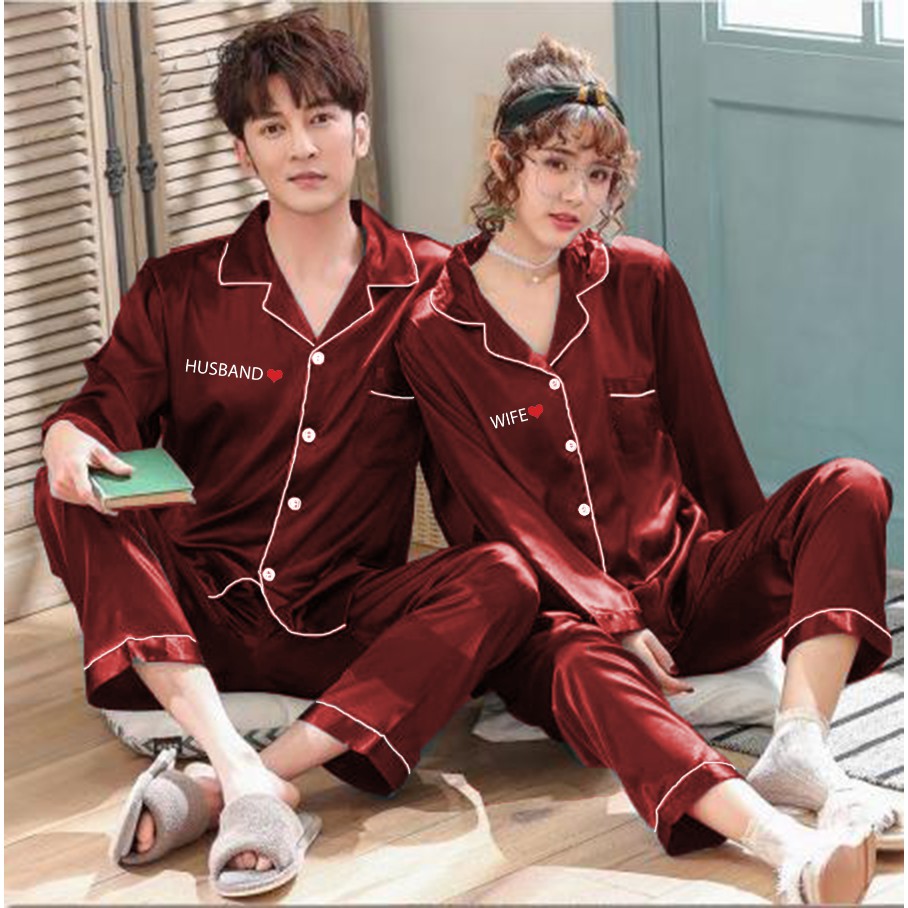 Zavyn Piyama Couple Satin PP HUSBAND LOVE & WIFE LOVE Lengan Panjang