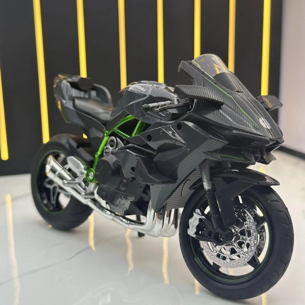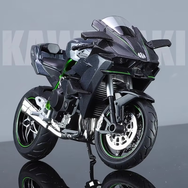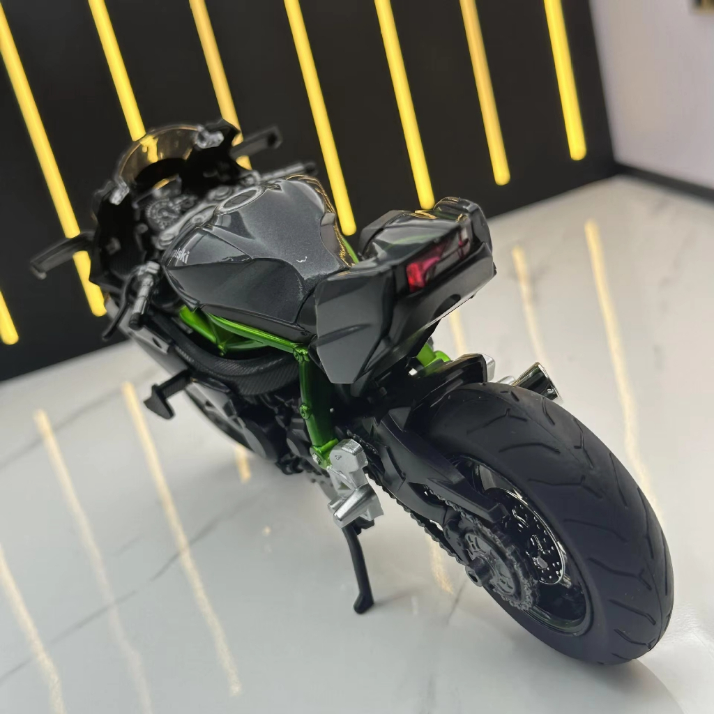 Diecast 1:12 Kawasaki Ninja H2R (Rantai Gerak, Paddock, Suspensi, Lampu, Suara) Miniatur Motor Sport