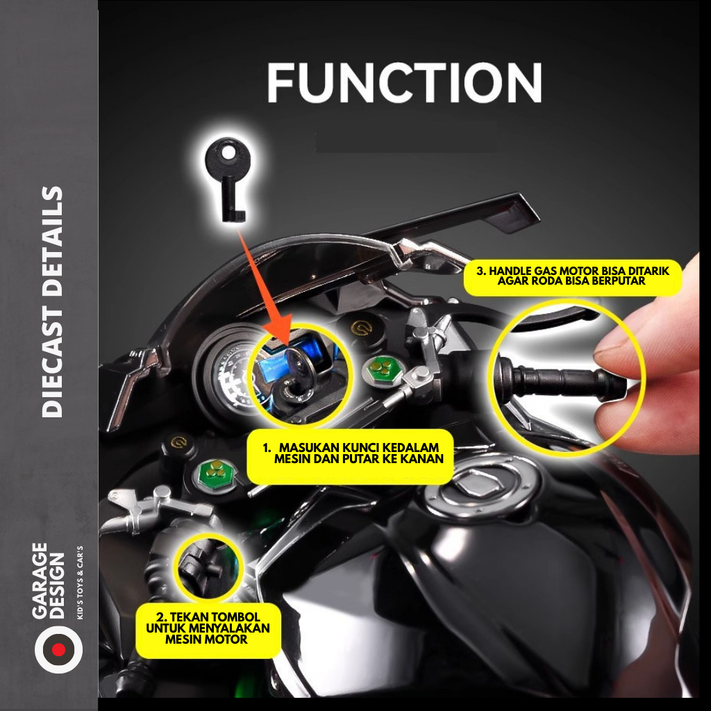 DIECAST MINIATUR MOTOR KAWASAKI NINJA H2R SKALA 1:6 DENGAN FITUR BISA DI GAS & STARTER ENGINE UNTUK KOLEKSI PREMIUM DAN