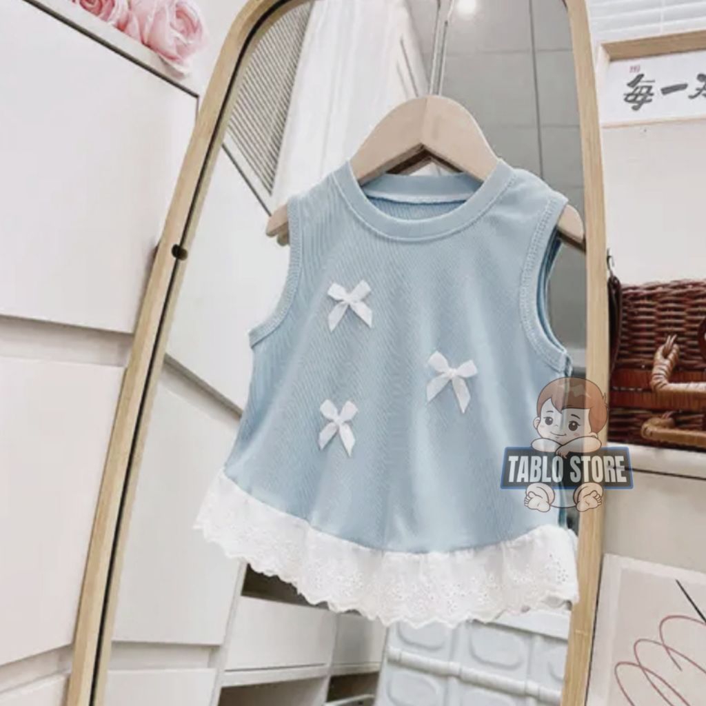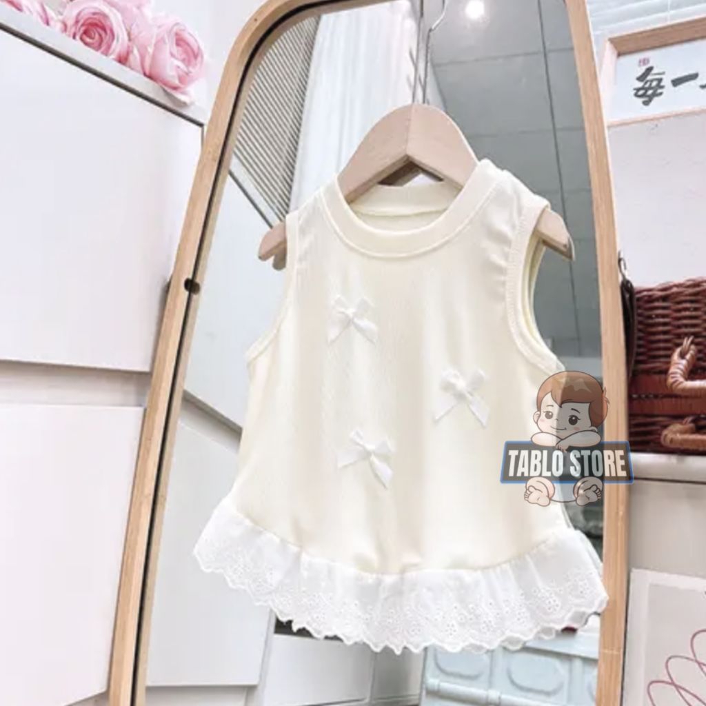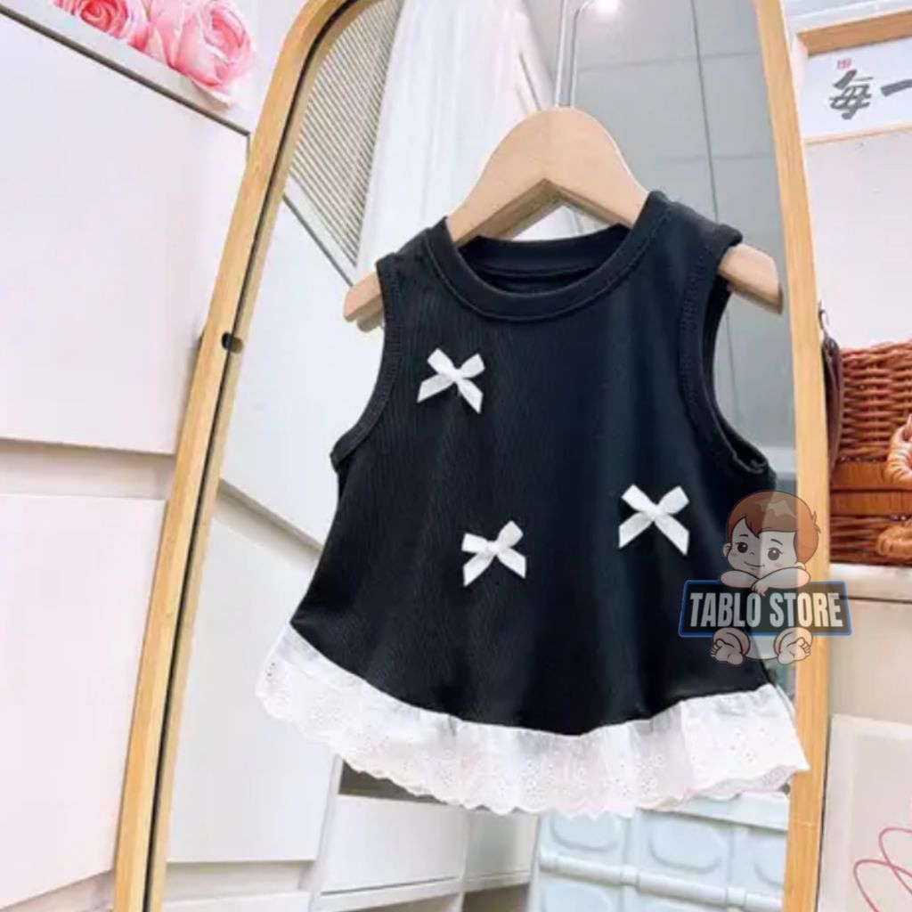 Baju Kaos Anak Atasan Renda Baju Anak Perempuan Motif Pita Usia 1-6 Tahun