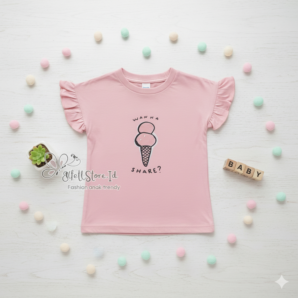 Baju Kaos Anak Ice Cream T-shirt Kaos Anak Perempuan 0-5 Tahun