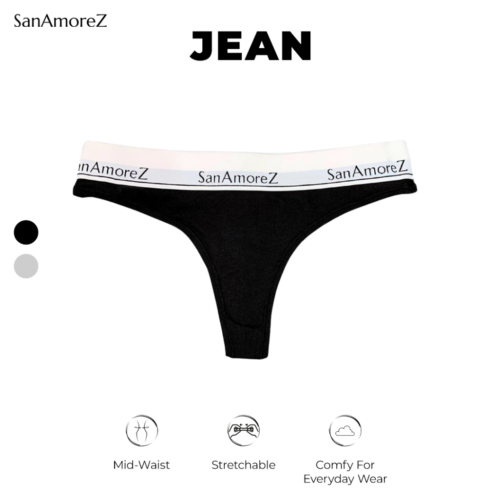 SanAmoreZ | Women Classic Thong / Celana Dalam Wanita - Cotton | Size XS - XL | Mid Waist | Jean Classic Thong