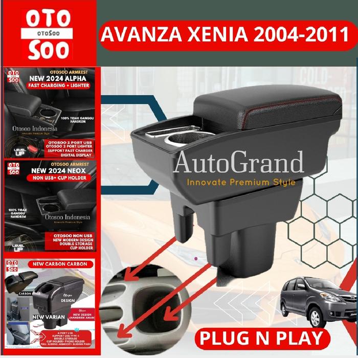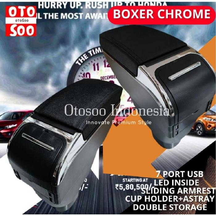 ARMREST AVANZA XENIA 2004-2011 CONSOLE BOX AVANZA XENIA OLD 2004-2011-OTOSOO INDONESIA - BOXER CHROME, JAHIT MERAH