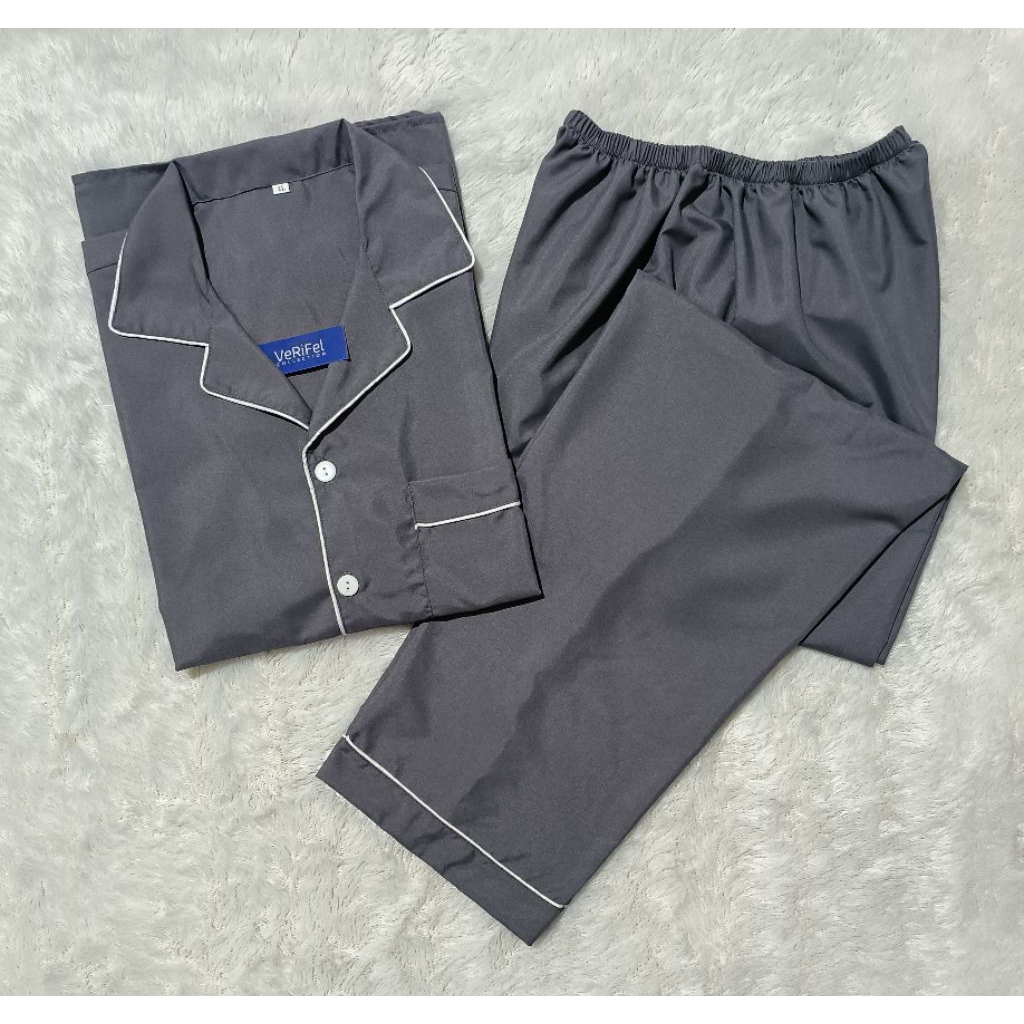 VeRiFel Piyama Abu Polos Baju Tidur Pria / Wanita Remaja / Dewasa / Jumbo Katun Lembut Berkualitas Promo Murah Setelan CP / PP Fit to 90kg 175cm Harga Grosir