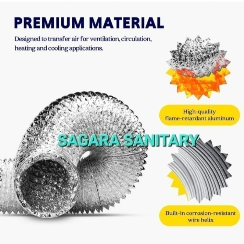 pipa exhaust 3 in flexible ducting tahan panas / 3" selang aluminium eksos