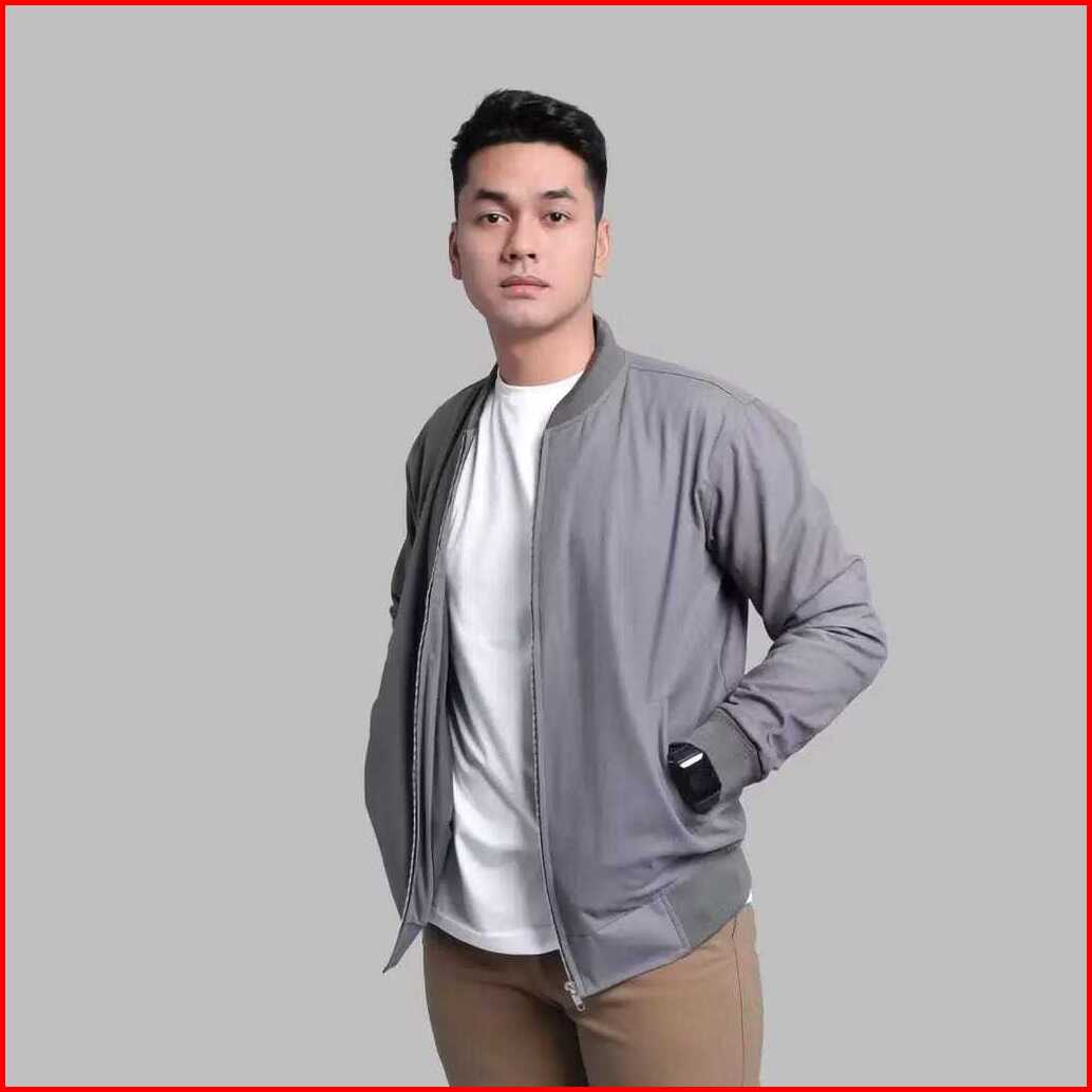 Juljol Jaket Bomber Pria Canvas Polos Casual
