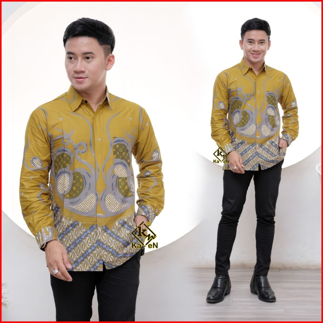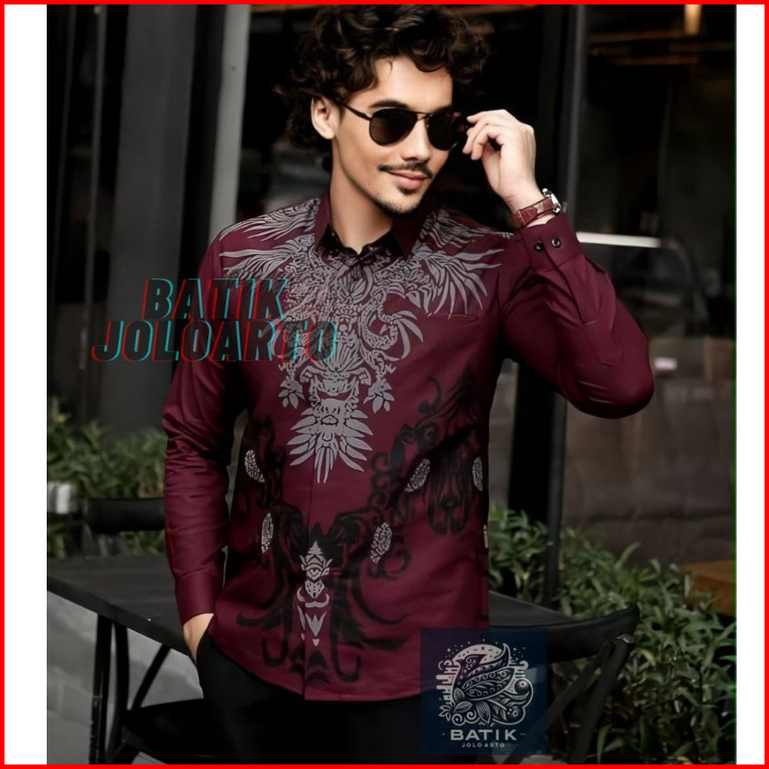 Batik Joloarto Motif Bimantara Burgundy Kemeja Batik Pria Lengan Panjang Modern Batik Kantor Pria