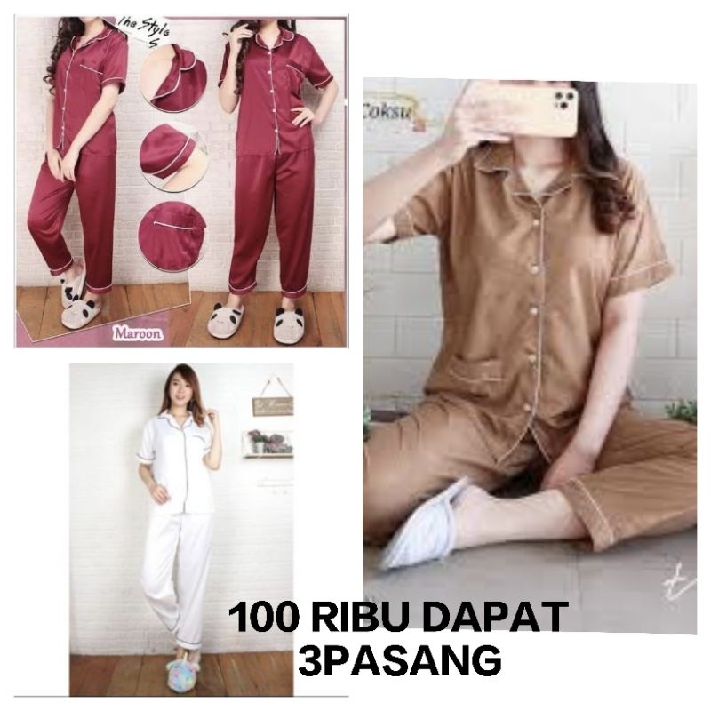 Setelan Piyama Baju Tidur Wanita Kekinian Paket Hemat Dapat 3 Setel