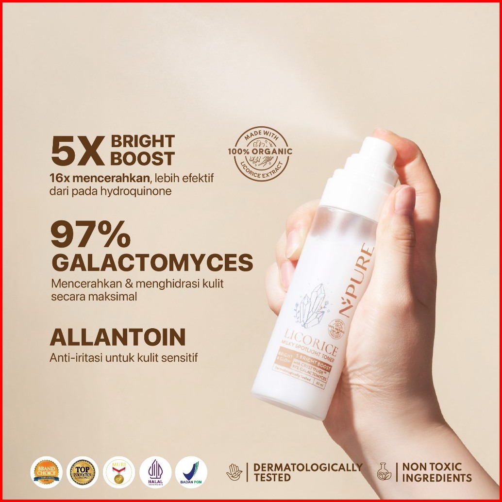 Npure Toner Licorice Milky Spotlight Brightening Toner Toner Wajah Cerah Glowing Fine Mist Aman Bumil Busui