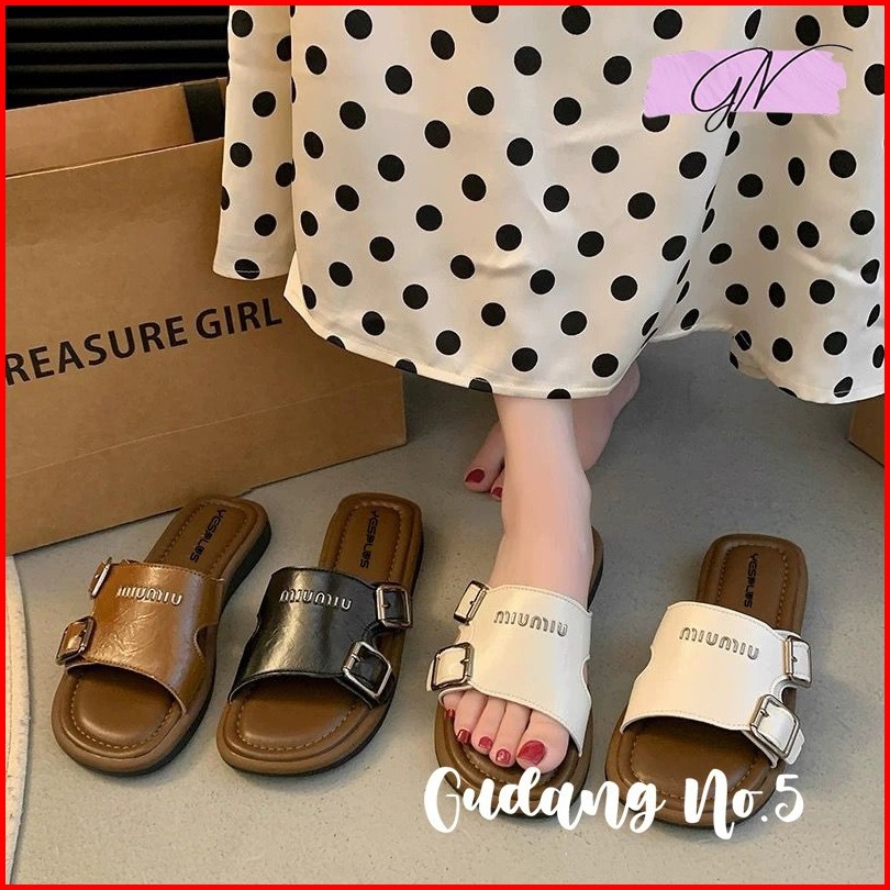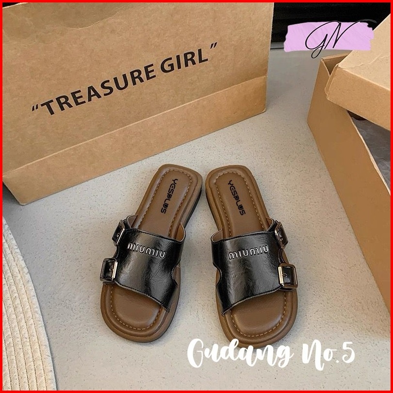 Gn-820-2 Sandal Selop Flat Jelly Antislip Model Miu Miu Teplek Wanita Import Pcu Terbaru