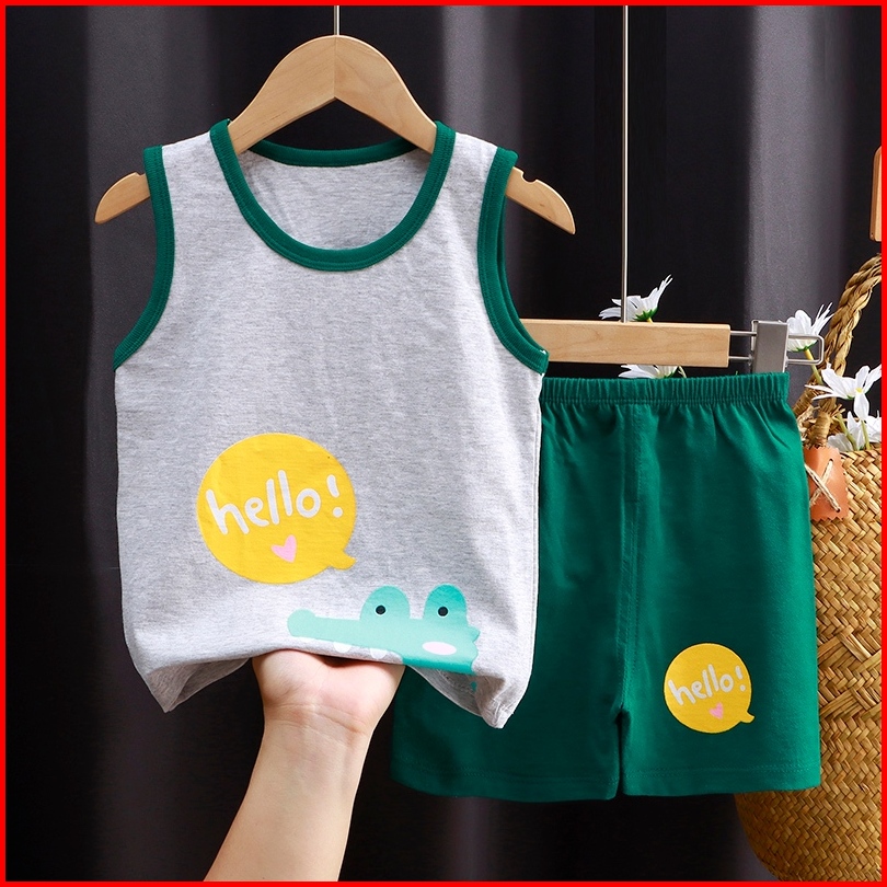 Unikid Baby Baju Bayi Oblong Tanpa Lengan Umur 0-5 Tahun Setelan Anak Katun