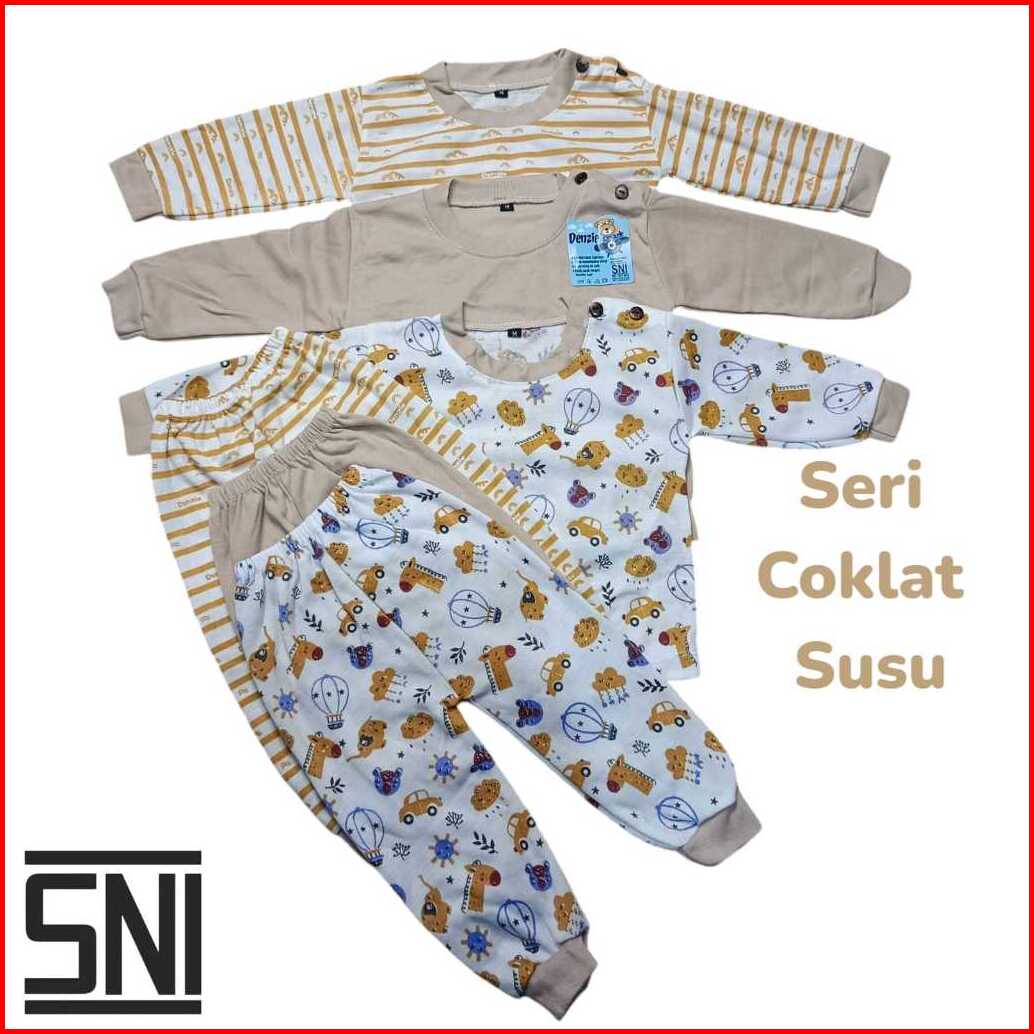 Paket 3 Setelan Baju Piyama Bayi Setelan Panjang Usia 3-24 Bulan Laki Laki Perempuan - Denzie Sni