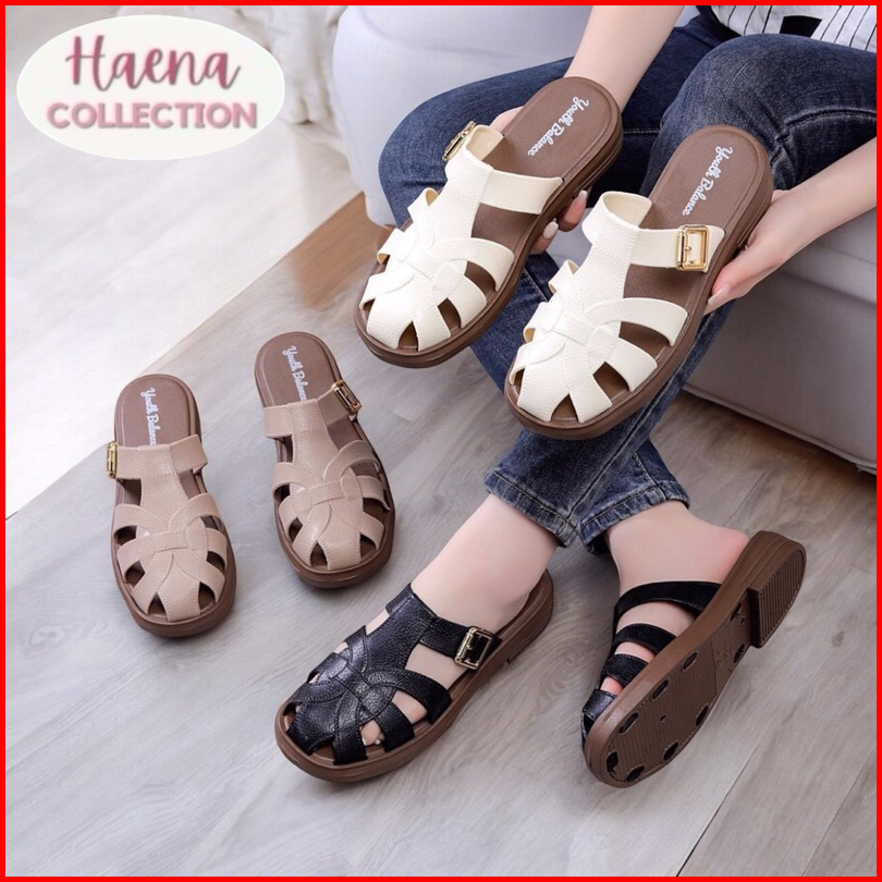Haena.collection Import Sandal Slop Wanita Motif Kulit Jeruk Cantik Bahan Elastis Terbaru 062-x1