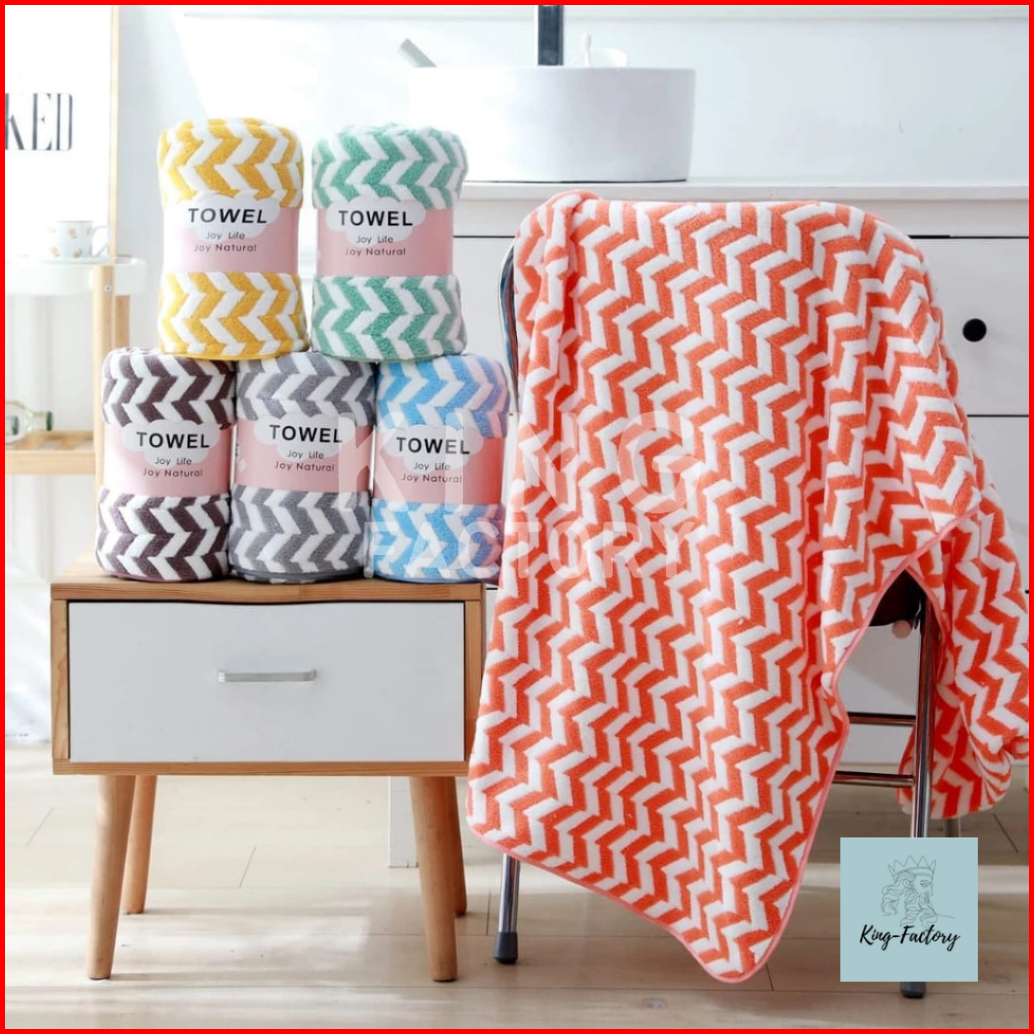 King-factory Handuk Mandi Microfiber 70x140 Cm Motif Zigzag Lembut Cepat Kering Daya Serap Tinggi