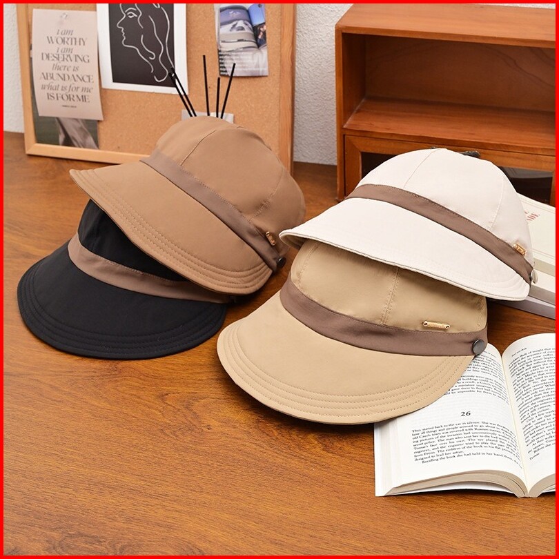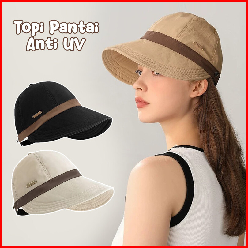 Topi Pantai Wanita Anti Uv Bucket Half Visor Lebar Pelindung Panas Matahari Fashion Kekinian