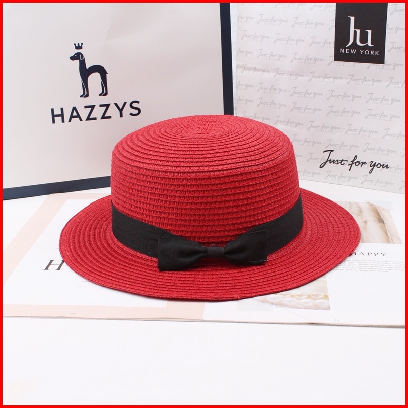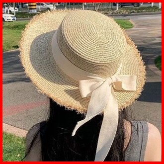 Topi Pantai Wanita Straw Hat Pita Hitam Topi Pelindung Sinar Matahari