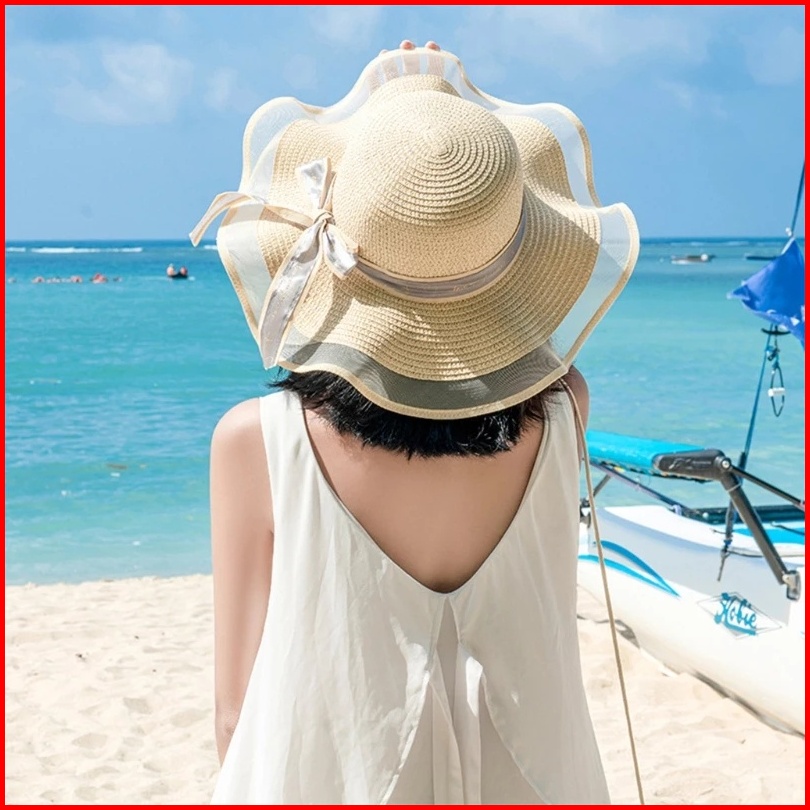 Topi Pantai Kaira Gelombang Nylon Pita