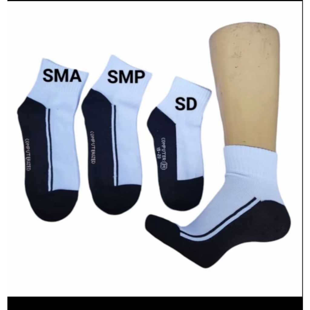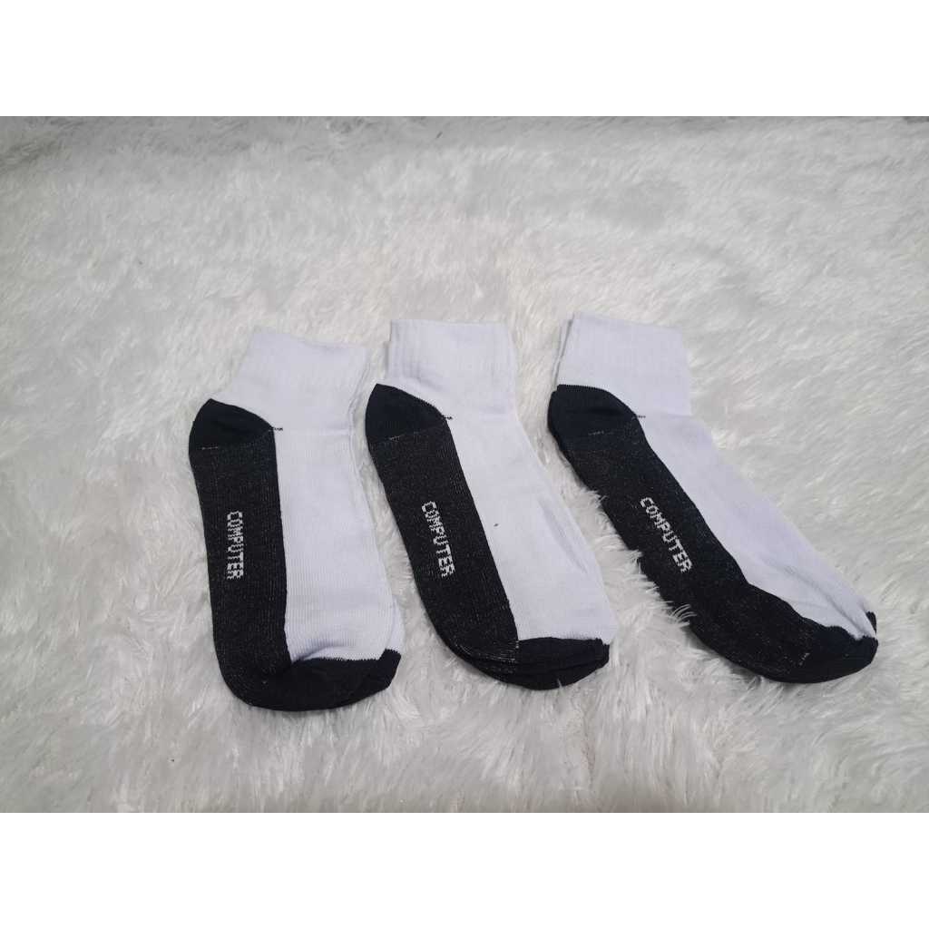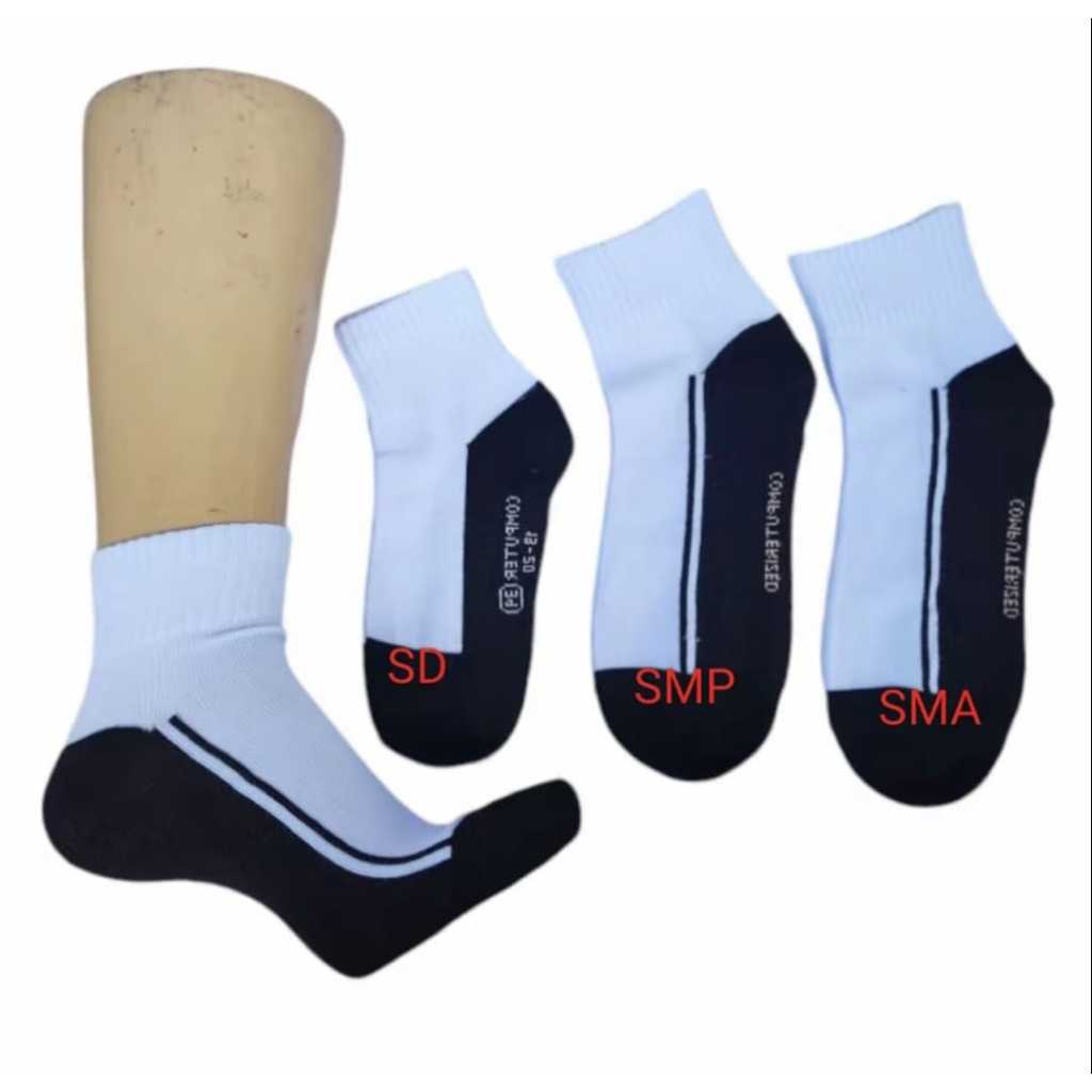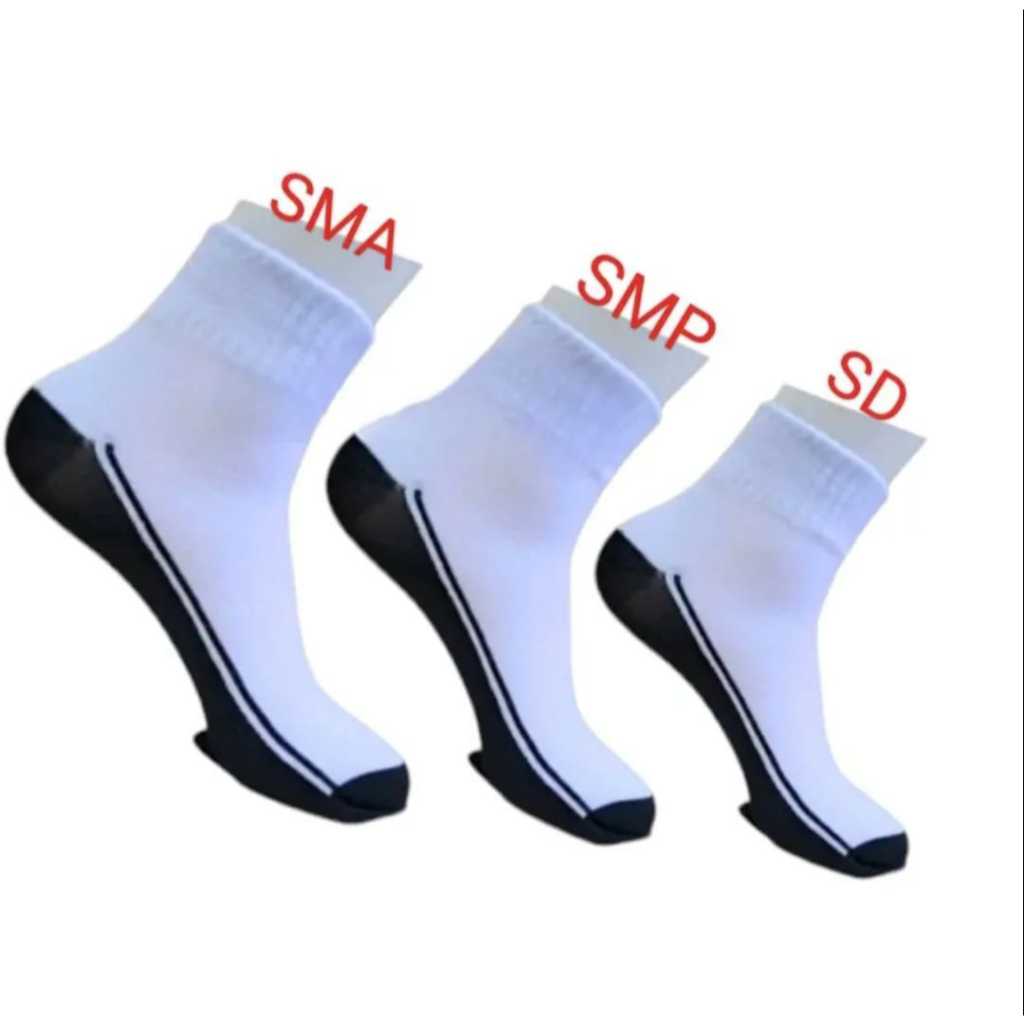 3Pasang Kaos Kaki Putih Telapak Hitam , Kaos kaki Hitam Putih Pendek SD SMP SMA