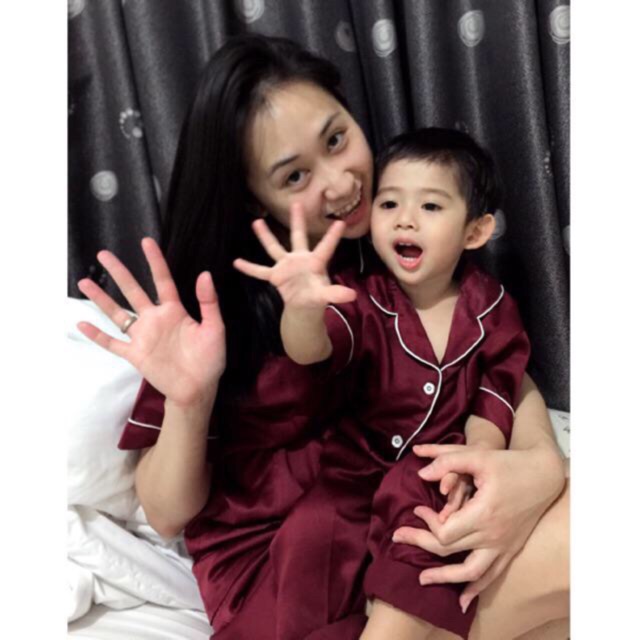 bajutidur SATIN MAROON silk exclusive bisa pasangan ibu anak keluarga