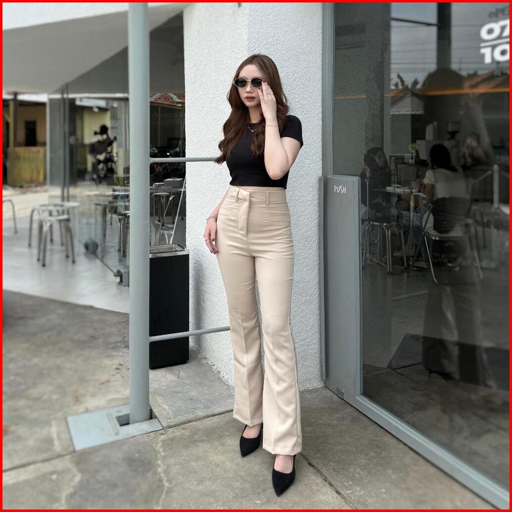 Urchoice - Kylie Cutbray Highwaist Pants - Cutbray Flare Pants Wanita - Celana Anti Kusut 01
