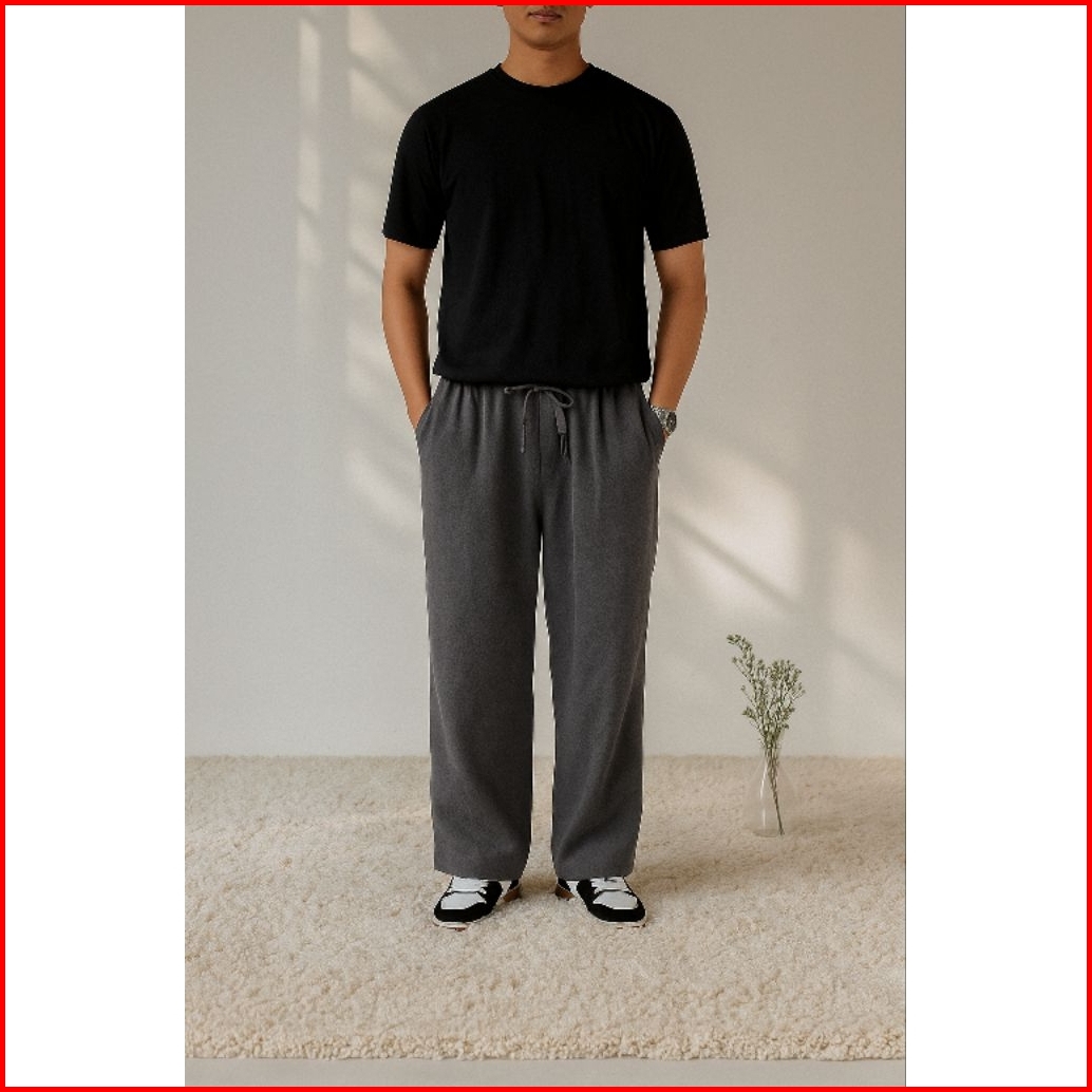 Loose Pants Basic Celana Training Oversized Longgar Pria Bahan Fleece Nyaman Korean Style